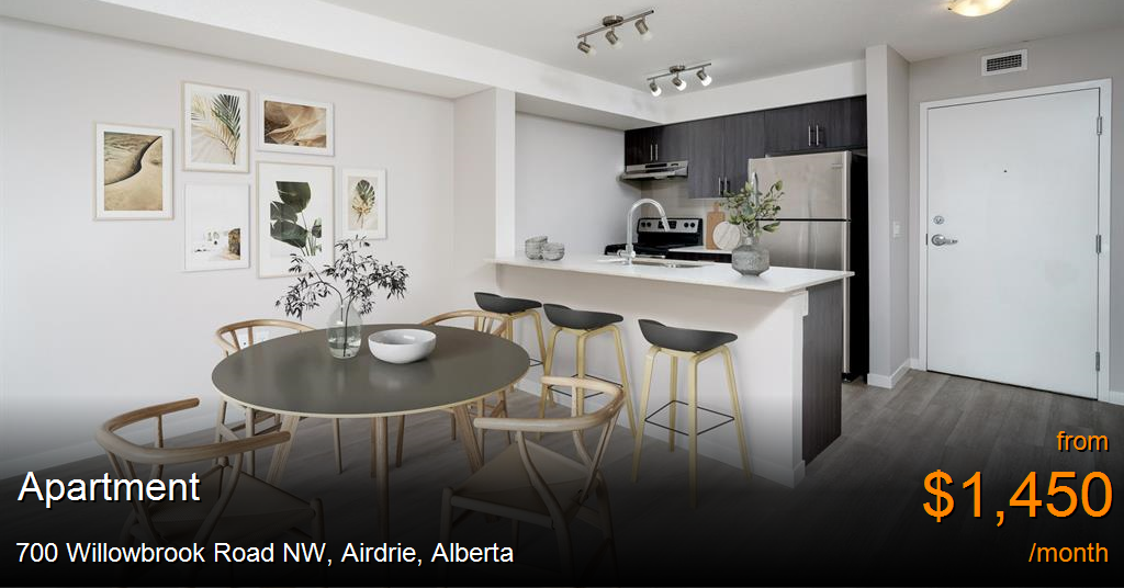 Apartment for rent in Airdrie at 700 Willowbrook Road NW. Quality long term rental or bridge to new home ownership (single family or attached) – we're your best choice in town! We offer units in 3 builldings within one area: Central - building 1000, Courtyard - building 3000, and Creekside - building 4000. Units with utilities included now available at Central (building 1000): • 1 Bedroom units starting at only $1,600/month • 1 Bedroom plus Den starting at only $1,650/month • 2 Bedroom (2 bathroom) units starting at $1,750/month • 2 Bedroom (2 bathroom) plus Den starting at only $1,900/month• Features: • Stainless Steel appliances including in-suite laundry • Heat and water included in Central - building 1000 • Luxury vinyl plank flooring • Comfortable Carpet in all bedrooms • Modern kitchens • Stylish Quartz countertops in kitchen and bathrooms • Window coverings • Heated Underground parking • Elevators • Secure building with 24 hour On Site Management • Fitness/Exercise Room that includes a Bowflex Xtreme, Treadmill and Elliptical trainer • Private Courtyard with access to Airdrie's extensive walking trails Backing on to Nose Creek you'll find pathways at your door! With shopping and restaurants close by, plus a view that's nearly impossible to beat from your own suite AND from our roof top patio. . Central is the place to be! Central is where life is all around you. Central is where you LIVE WELL! Contact us for your own personal tour. You won't be disappointed!