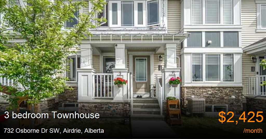 Townhouse for rent in Airdrie at 732 Osborne Dr SW. Welcome to the your new home of luxury living in South Windsong, Airdrie – an impeccably designed 2-story townhome that seamlessly blends style, functionality, and convenience. 3 Bedrooms +2.5 Bathrooms and a double attached garage. The master bedroom is a retreat unto itself, boasting a walk-in closet for your wardrobe essentials and a spacious 3-piece ensuite for a spa-like experience. Step onto the balcony from the upper level to unwind and relish the fresh air in your private oasis. Convenience meets practicality with the upstairs laundry room, streamlining your daily routines. This unit is easy access to Deerfoot Trail, Cross Iron Mills Mall, Stoney Trail, and Coopers Shopping Center. This residence is more than just a home.Pets allowed - Cats and small dogs onlyNo smoking$2475.00 rent + security depositUtilities not includedDouble garage unitTo schedule a viewing please contact Rikku at 403-539-9976 via text or rikku.dawson@realpropertymgt.ca