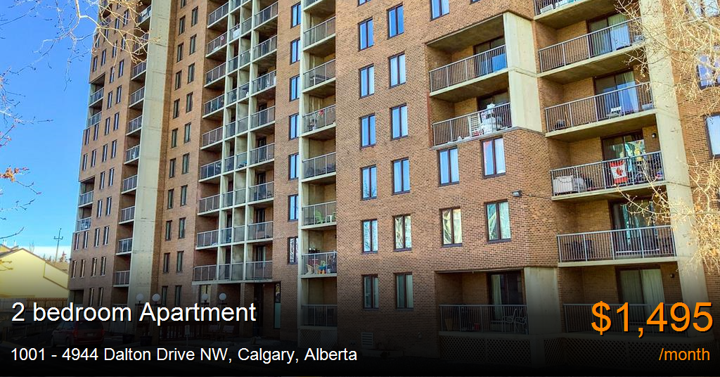 Apartment for rent in Calgary at 1001 - 4944 Dalton Drive NW. Talk about LOCATION! Welcome to this beautiful 2 bedroom executive condo located in the ultra desirable NW community of Dalhousie! This unit welcomes you with gleaming laminate hardwood flooring and ceramic tile throughout, a spacious kitchen with granite counters and full appliance package for the discerning home chef. The massive living room provides tons of natural light through your oversized patio doors. This property also features a large master retreat to relax after a long day, 2nd spare bedroom that could double as a den or home office depending on your needs, a full 4-pc shared bathroom, and a good sized storage area as well.This building also has a fitness centre and pool and is located within walking distance to all the amenities of Dalhousie Shopping Centre including Safeway, Subway, DollarStore, Banking, Earls Restaurant, Chapters, Gas, and the C-Train station just to name a few. With easy access to Crowfoot Trail, getting around for work or out to the mountains for play is a breeze!