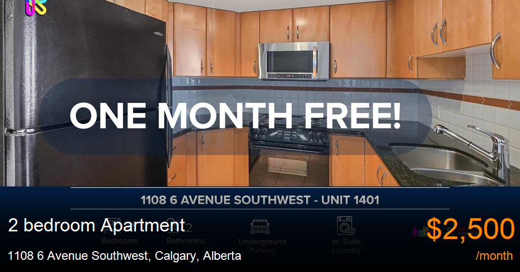 Apartment for rent in Calgary at 1108 6 Avenue Southwest. Fantastic 2 Beds+ Den, 2 Baths Apartment/Condo | No Pets Allowed | ONE MONTH FREE if move in by Feb 1/26