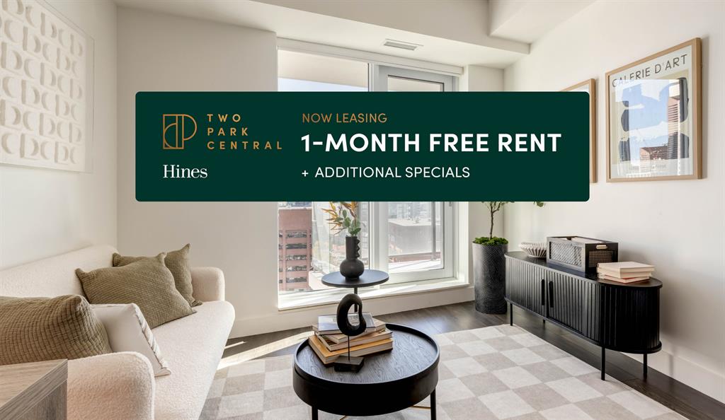 Two Park Central brings best-in-class perks to the vibrant life of the Beltline. Character and culture on the ground, with restaurants, galleries, and shops all around. And a swift elevator ride away, your polished modern suite, with a quiet view onto Calgary’s evolving cityscape.