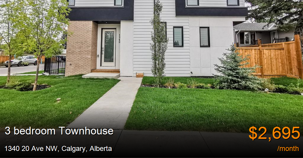 Townhouse for rent in Calgary at 1340 20 Ave NW. Stunning Corner Unit with everything! Very close to U of C, shops and restaurants as well as public transit.