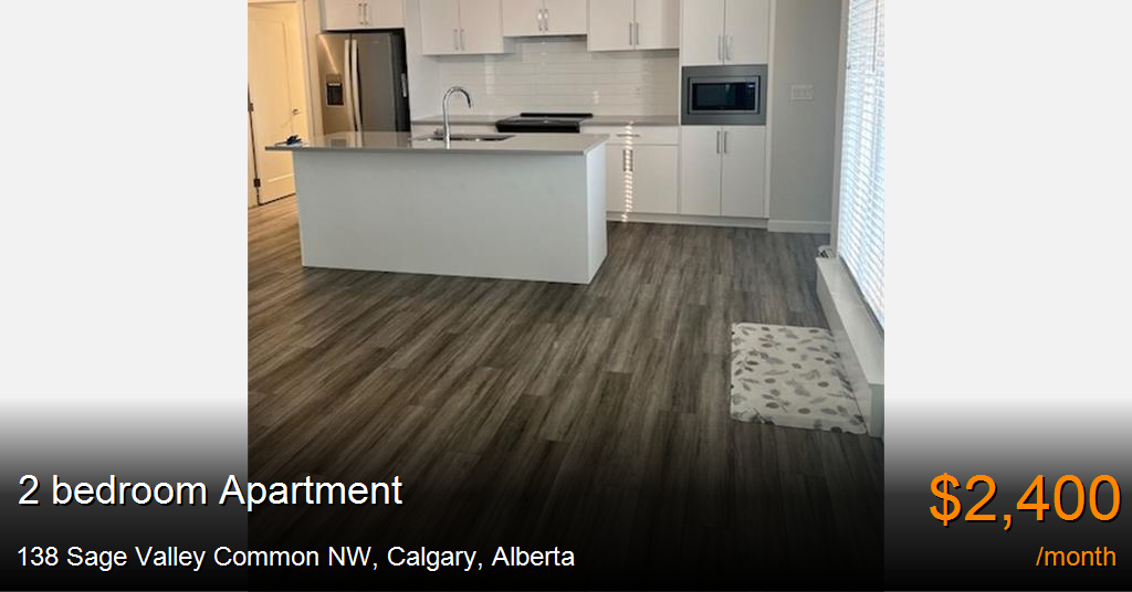 Apartment for rent in Calgary at 138 Sage Valley Common NW. Introducing the Bright 2 Bedroom Condo at the Q, located in the vibrant city of Calgary, AB. This modern condo boasts 2 bedrooms and 2 bathrooms, perfect for those seeking a comfortable and convenient living space. Enjoy the stunning view from your private balcony, or take advantage of the underground parking and additional storage available. With a prime location near a Shopping Center, retail shops, and restaurants, everything you need is right at your fingertips. Don't miss out on the opportunity to call this stylish condo your new home.