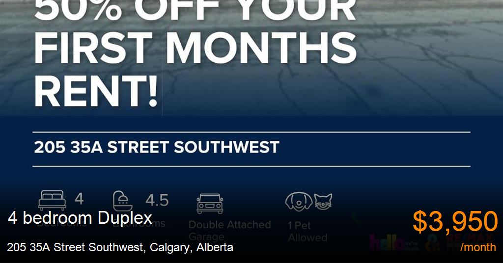 Duplex for rent in Calgary at 205 35A Street Southwest. Modern 4 Beds, 4.5 Baths Duplex | Available 08/01/2025 | 1 Pet Allowed. 20lbs Max
