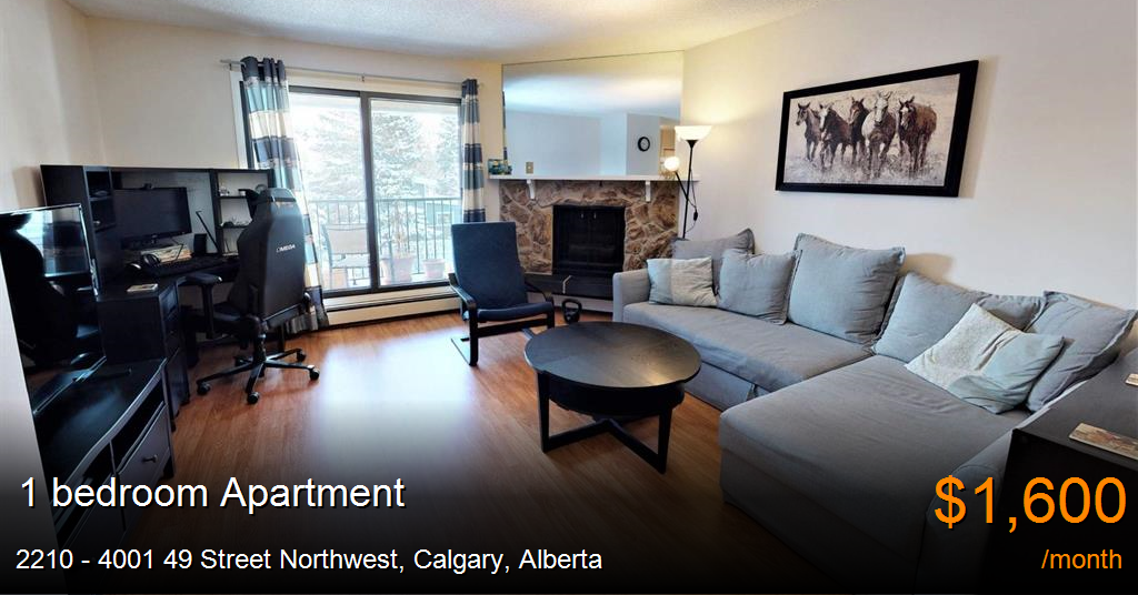 Apartment for rent in Calgary at 2210 - 4001 49 Street Northwest. This 2nd floor unit at 4001 49th Street NW is a fresh and clean one bedroom apartment, ideally located right across from Market Mall but on the quiet side. The location cannot be beat! Safeway is right across the street, the University is just minutes away, all the shops, restaurants, and entertainment of Market Mall, is right at your door step. In addition, the location is serviced by several major bus routes.