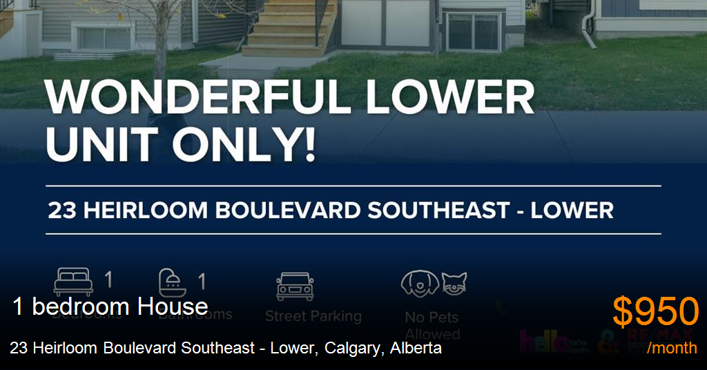 House for rent in Calgary at 23 Heirloom Boulevard Southeast - Lower. WONDERFUL 1 BED/ 1 BATH LOWER UNIT ONLY!