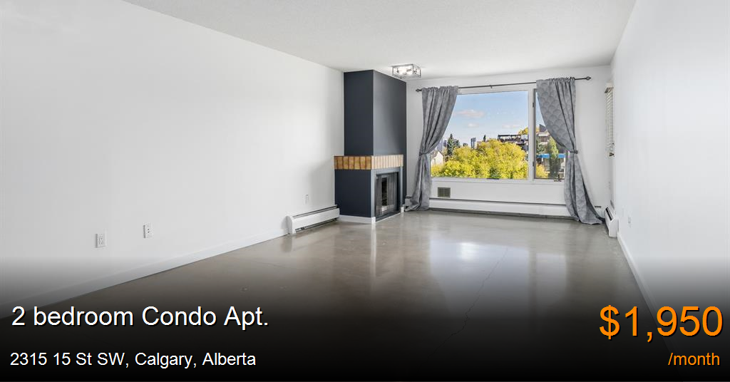 Condo Apt. for rent in Calgary at 2315 15 St SW. Building Biology Principaled - Spacious 2 Bedroom 1.5 Bathroom Apartment in All Concrete Bankview Building!