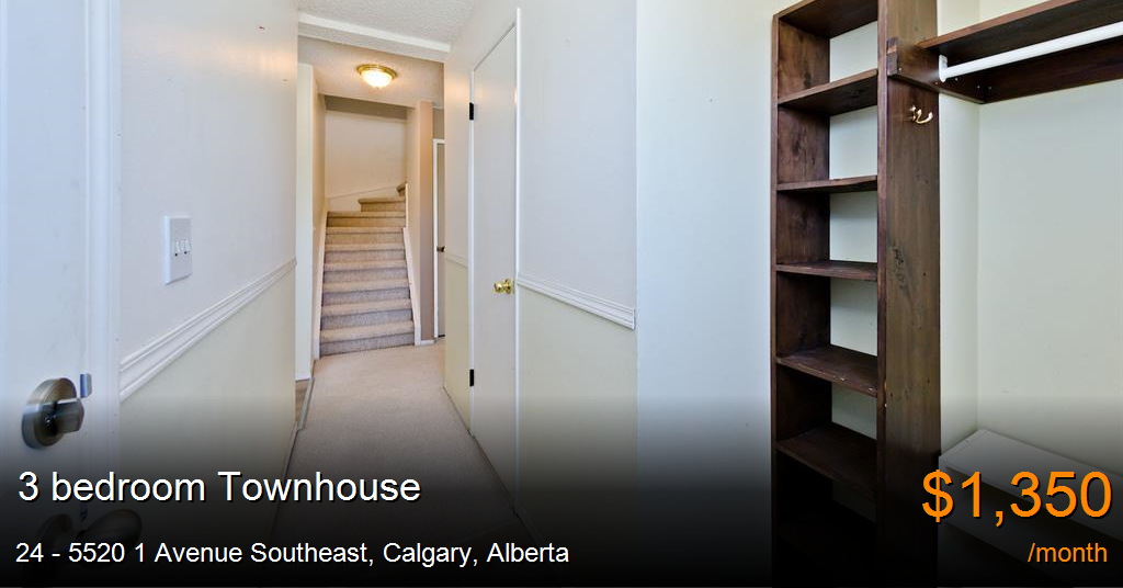 Townhouse for rent in Calgary at 24 - 5520 1 Avenue Southeast. Enjoy this bright end unit in an excellent well maintained complex!