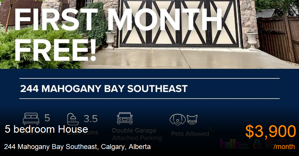 House for rent in Calgary at 244 Mahogany Bay Southeast. INCENTIVE: First Month Free!
