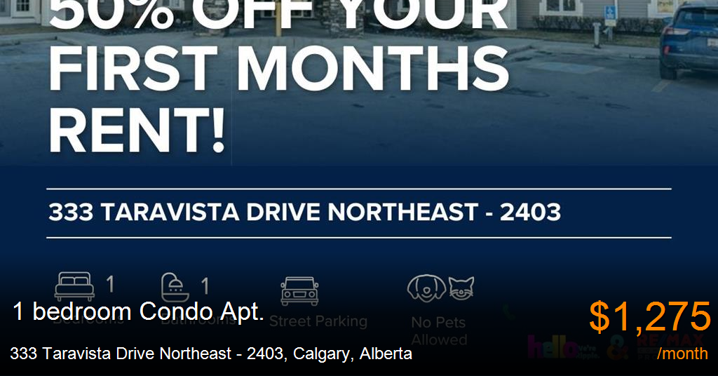 Condo Apt. for rent in Calgary at 333 Taravista Drive Northeast - 2403. 50% OFF YOUR FIRST MONTHS RENT! GORGEOUS 1 BED+DEN/ 1 BATHS CONDO