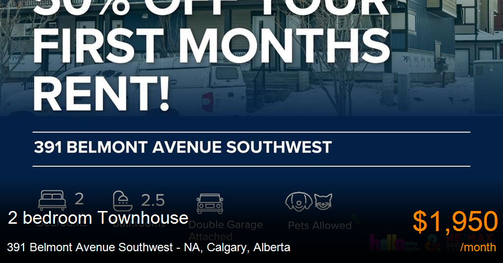 Townhouse for rent in Calgary at 391 Belmont Avenue Southwest - NA. INCREDIBLE 2 BEDS/2.5 BATHS TOWNHOUSE WITH GARAGE INCLUDED!