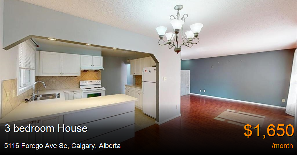 House for rent in Calgary at 5116 Forego Ave Se. Rent: $1,650 plus Utilities
