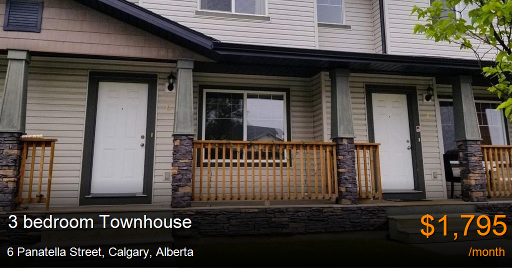 Townhouse for rent in Calgary at 6 Panatella Street. Beautiful bright and spacious townhouse condo in the nice and bustling neighborhood of Panorama Hills! The unit is tastefully finished with open concept. The great room is indeed great. The kitchen is beautiful and spacious with 4 newer black appliances and a very delightful arched window looking out into the great room. The oak cabinets and fixtures make for a very pleasant kitchen to cook in. The dining area is large and very bright with a door to the 96 Square Foot deck. A 2-piece bath completes the main floor. Upstairs has three large bedrooms with a 4-piece bathroom. All rooms have closets and are very bright. For your convenience, the basement has a washer and dryer and loads of space for storage. The owners' items stored in a corner of the basement will remain. This home is close to Transport, Shopping, Playground, Schools, and easy access to Stoney Trail. This delightful home has all the comforts you are looking for.