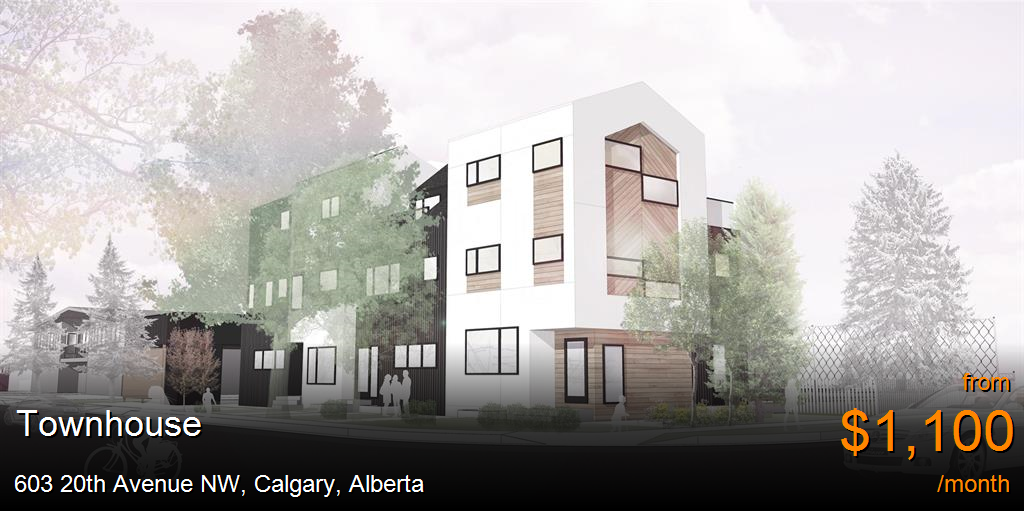 Townhouse for rent in Calgary at 603 20th Avenue NW. These newly built, stunning Mount Pleasant townhomes feature three-bedroom above grade layouts with contemporary styling and design. Complete with premier finishings, these units showcase three levels of thoughtfully designed living space, covered parking, private meticulously landscaped back yard, and a large sky patio for each upper unit. Unit features include gourmet kitchen perfect for entertaining large groups or intimate meals with new premium quartz counter tops with an extended island, soft-closing cabinets and drawers, stainless steel kitchen appliances, chrome hardware and near 10' ceilings. Tenants will also enjoy in-suite laundry, floor-to-ceiling tile in bathrooms, luxury vinyl plank flooring throughout this open concept space, huge windows creating a light, airy space and contemporary high-end detailing throughout. Each of the three bedrooms upstairs can easily fit a king bed and each master bedroom comes complete with its own extra large walk in closet and fabulous ensuite with his-and-hers sinks and the shower you've always dreamed of! Enjoy executive, luxury living at its finest with amenities sure to improve your lifestyle in the heart of Mount Pleasant. Be sure to click on the video link!
