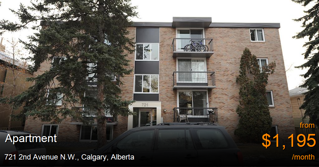 Apartment for rent in Calgary at 721 2nd Avenue N.W. Currently offering a rental incentive; Receive one month free rent on a 12 month lease. Gorgeous four storey walk up. Close to Memorial Drive, easy access to downtown core and close to the University and Foothills Hospital.