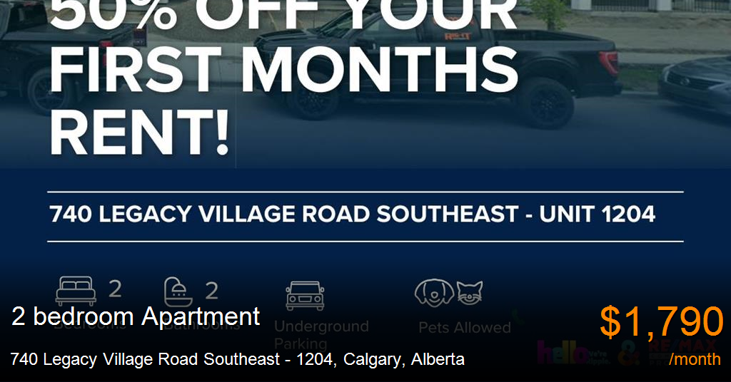 Apartment for rent in Calgary at 740 Legacy Village Road Southeast - 1204. 50% OFF YOUR FIRST MONTHS RENT! AMAZING 2 BEDS/ 2 BATHS CONDO
