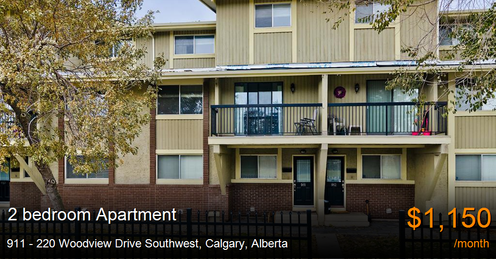 Apartment for rent in Calgary at 911 - 220 Woodview Drive Southwest. This warm and inviting 2 bedroom 1 bathroom apartment in Woodlands, offers 1108 sq. ft. with laminate floors on the main level and carpet to keep you warm in the bedrooms upstairs.