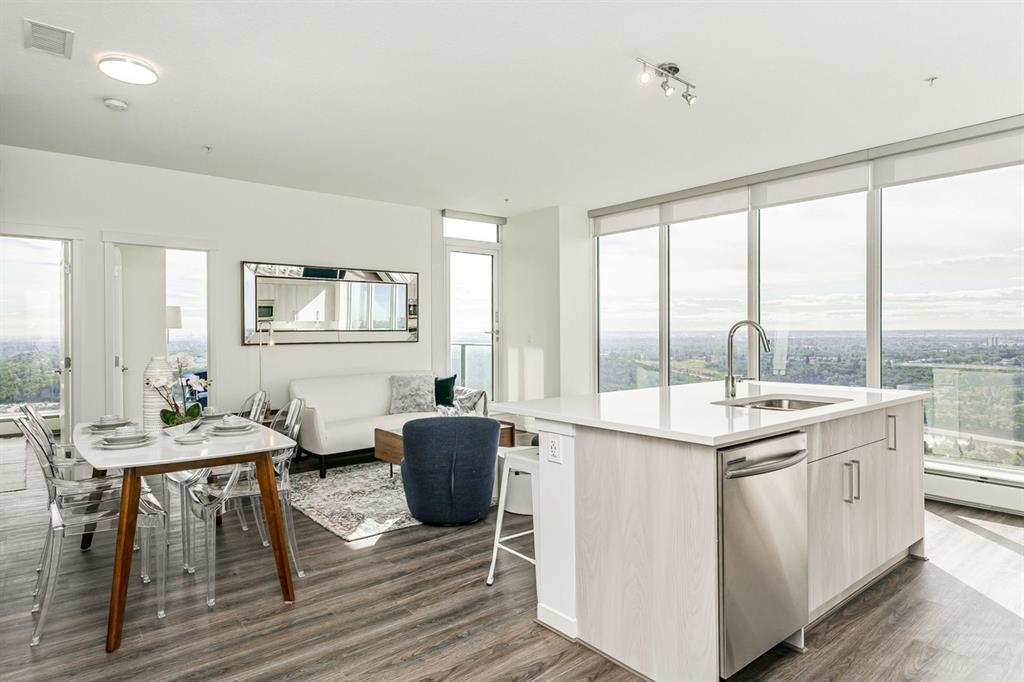 All units include a balcony with aluminum and glass railing Open European kitchen concepts including stone countertops, and extended eating bar Stainless Steel appliances: refrigerator, stove, dishwasher/dryer, Built-in microwave and hood fan Ensuite full-size washer/dryer High-end vinyl plank flooring throughout each unit Barometer heating system Foil coil unit for air conditioning Combination of window wall system throughout suites to allow maximum light penetration and views, combined with curtain wall system for privacy UV protected, Low-E glazing on windows for energy efficiency and maximum comfort 9' ceiling throughout Knockdown ceiling texture Undermount double kitchen sink with pull out lever faucet High-speed internet and cable