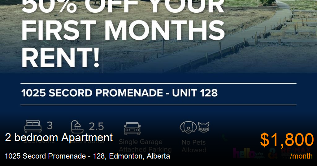 Apartment for rent in Edmonton at 1025 Secord Promenade - 128. 50% OFF YOUR FIRST MONTHS RENT! AMAZING BRAND NEW 2 BEDS+DEN/ 2.5 BATHS TOWNHOUSE
