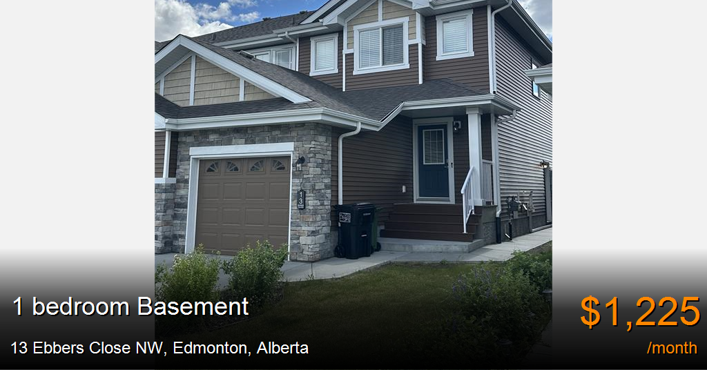 Basement for rent in Edmonton at 13 Ebbers Close NW, Unit:BSMT. Available September 1, 2025 - Legal One Bedroom Basement Suite - Everything included (utilities - based on single occupancy, and high speed wireless Internet) for $1225 per month!