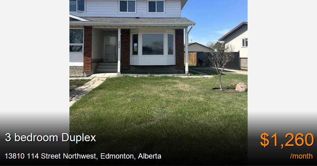 Duplex for rent in Edmonton at 13810 114 Street Northwest. ***HALF A MONTH'S RENT FREE WITH THE SIGNING OF A ONE-YEAR LEASE*** Limited Offer between November 2025 till Feb, 2026 ONLY*
