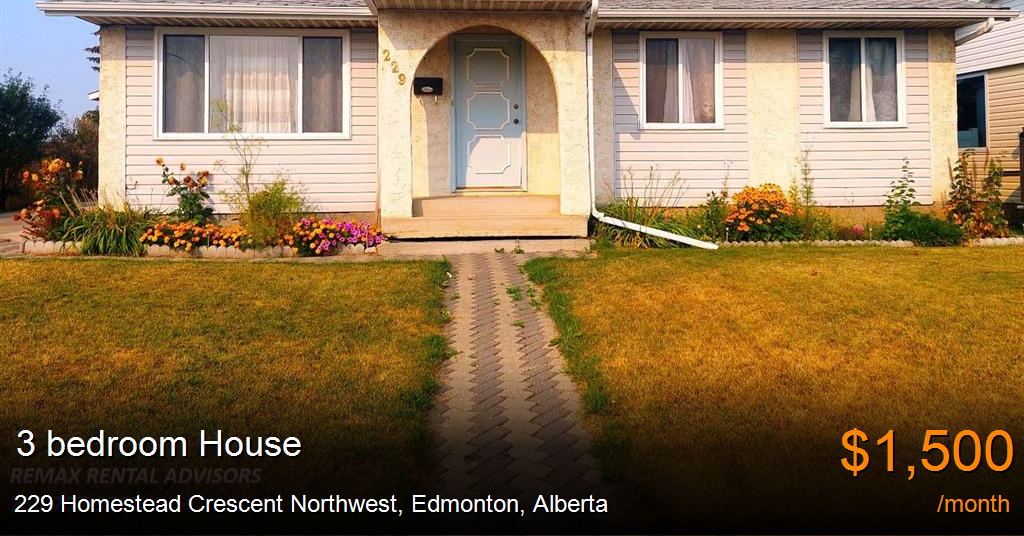 House for rent in Edmonton at 229 Homestead Crescent Northwest. ***Pets Allowed: No***