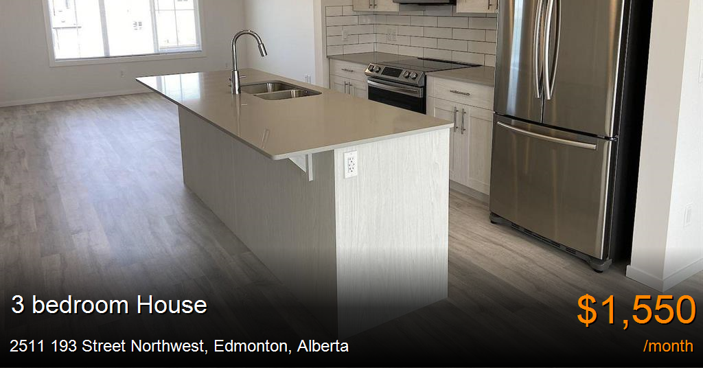House for rent in Edmonton at 2511 193 Street Northwest. Beautiful brand new 3 bed 2.5 bath townhouse*Garage Avail.*In-Suite Laundry*Beautiful Brand-New Riverview Townhouse