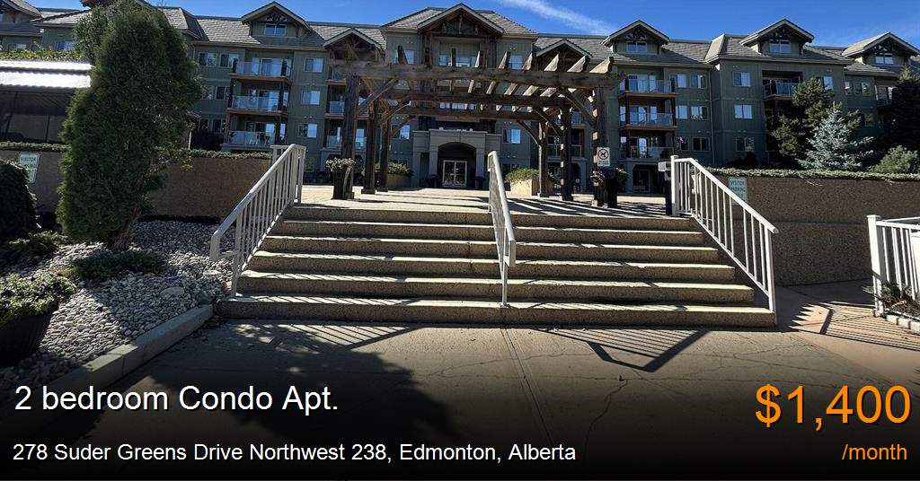 Condo Apt. for rent in Edmonton at 278 Suder Greens Drive Northwest 238. 30+ building! 2 Bed 2 Bath Condo Underground Parking IncludedPrivate Laundry*#238 278 Suder Green Drive NW