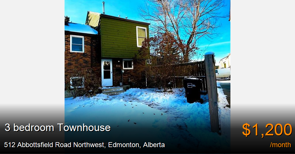 Townhouse for rent in Edmonton at 512 Abbottsfield Road Northwest. ***Small Pets Allowed: Yes- $50/month per pet***