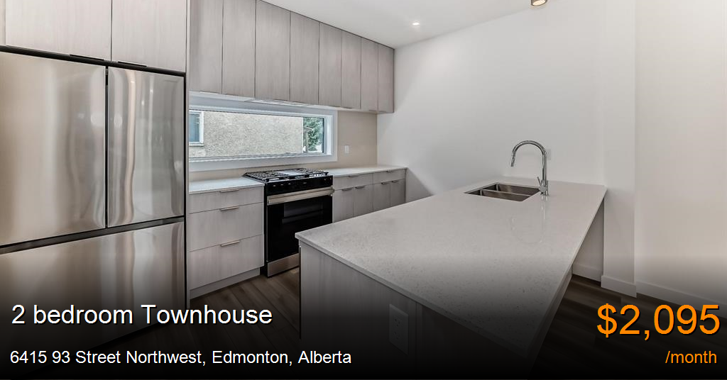 Townhouse for rent in Edmonton at 6415 93 Street Northwest. This stunning, practically NEW main floor townhome is located in the highly sought-after Hazeldean neighborhood. With parks, schools, Ritchie Market, and Mill Creek Ravine just a short walk away, plus easy access to downtown, Gateway Boulevard, and Calgary Trail, you'll enjoy a perfect mix of style and convenience.