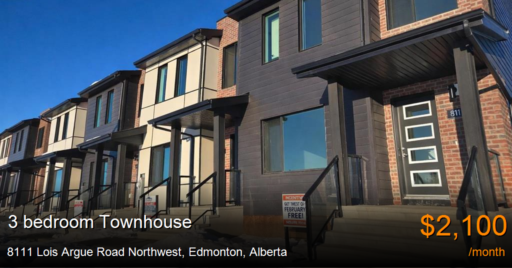 Townhouse for rent in Edmonton at 8111 Lois Argue Road Northwest. Welcome home to Blatchford! Edmonton's newest energy-efficient & forward thinking urban neighborhood!