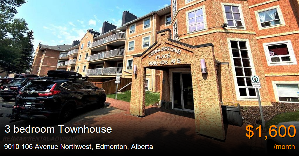 Townhouse for rent in Edmonton at 9010 106 Avenue Northwest. ***Small Pets Allowed: Yes- $50 /month per Pet***