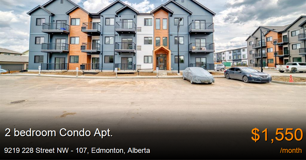 Condo Apt. for rent in Edmonton at 9219 228 Street NW - 107. Modern 2-Bed, 2-Bath Suite in Secord – Prime Location, Stylish Living Welcome to your brand new home in the vibrant community of Secord! This open-concept 2-bedroom, 2-bathroom suite offers nearly 700 sq. ft. of thoughtfully designed living space with all the modern features you're looking for. Suite Features: Bright and spacious open layout with neutral tones Durable vinyl plank flooring throughout Stylish kitchen with quartz countertops, stainless steel appliances, and plenty of cabinetry In-suite laundry with stackable washer and dryer Two full bathrooms, including an ensuite off the primary bedroom Location Highlights: Steps from Secord Park and Winterburn School Quick access to Highway 16A and Anthony Henday Drive Close to shopping, dining, and daily amenities Additional Details: Water, waste, and parking are included Tenant is responsible for heat and power Don't miss out on this well-located and stylish suite—perfect for singles, couples, or roommates looking for comfort and convenience.