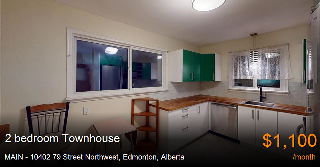 Townhouse for rent in Edmonton at MAIN - 10402 79 Street Northwest. Charming 2-Bedroom Main Floor in Forest Heights Minutes from Downtown!Location: MAIN-10402 79 Street NW Edmonton AB T6A3G9Suite: Main SuiteRent: $1100 + 60% of UtilitiesLive in the heart of Forest Heights in this beautifully updated 940 sq. ft. main floor suite. This raised bungalow offers a bright, open living space with large vinyl windows that flood the home with natural light. Perfect for professionals or a small family, this home blends mid-century charm with modern convenience.2 Spacious Bedrooms: Both featuring hardwood or laminate flooring (no carpet!).Renovated Kitchen: Ample cabinet space and modern appliances.Modern 4-Piece Bathroom: Recently updated with clean, contemporary finishes.Mudroom Entry: A dedicated back entry mudroom to keep your home tidy through all seasons.Comfort: Newer furnace and windows ensure the home stays warm and quiet.Corner Lot: Enjoy the extra space and privacy of a large fenced yard.Parking: Includes access to a single detached garage and plenty of street parking on this quiet corner.Forest Heights is one of Edmonton's most desirable communities for its proximity to nature and the city core.Transit: Bus stop located directly across the street for an effortless commute.Leisure: Minutes away from the Riverside Golf Course and the stunning River Valley trail system.Schools: Walking distance to local elementary and junior high schools.Downtown Access: Less than a 10-minute drive to the downtown core.----Address: MAIN-10402 79 Street NW Edmonton AB T6A3G9Abbreviation: 1040279STRNeighborhood: Forest HeightsBuilt: 1958Type: Single-FamilyClass: Single-DetachedStyle: BungalowSuite: MAIN SuiteLiving Space: 940 Sq Ft----Rent: $1200Pets: No PetsSmoking: No SmokingUtilities: Not Included Shared Water, Natural Gas, PowerBedrooms: 2