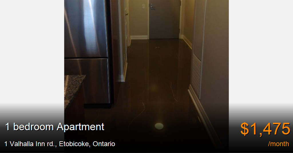 Apartment for rent in Etobicoke at 1 Valhalla Inn rd. Built Luxury Condo Suite 720 sq.ft. 1 parking included. Hydro extra.
