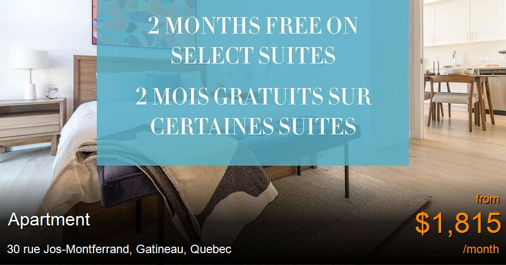 Apartment for rent in Gatineau at 30 rue Jos-Montferrand. Aalto II now leasing. Starting from $1,795, 1-bedroom, 1+den, and 2-bedroom, 2+den suites are available to rent.