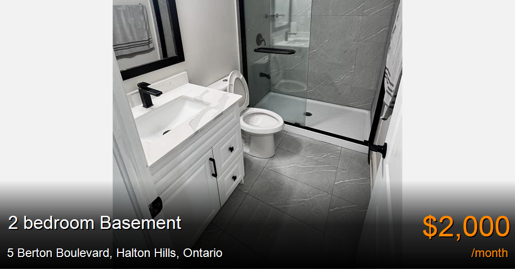 Basement for rent in Halton Hills at 5 Berton Boulevard. Spacious 2-Bedroom Basement Apartment for Rent – Prime Location!