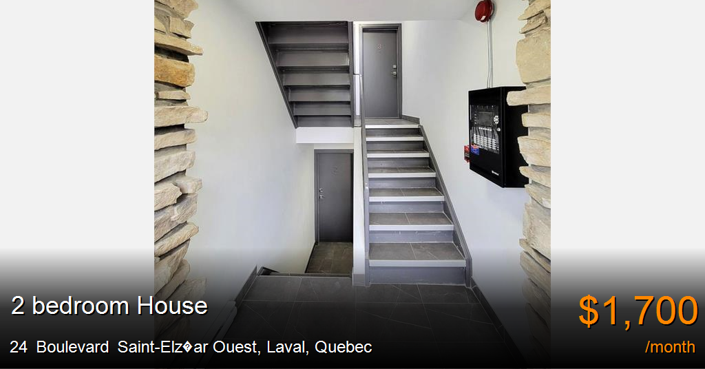 House for rent in Laval at 24 Boulevard Saint-Elz�ar Ouest. Welcome to 24 boul. Saint-Elzéar Ouest, a fully renovated building, with all common spaces, bathrooms and kitchens recently renovated to provide modern comfort and style. Ideal for those seeking comfort, convenience, and quality living, this quiet and clean building is perfect for professionals, families, and couples. Each unit is equipped with an air conditioning unit and a built-in air exchanger, ensuring year-round comfort and optimal air quality.Spacious apartments feature renovated flooring, a recently updated bathroom, and a private balcony—perfect for relaxing and enjoying fresh air. The photos are for illustration purposes only. The actual unit layout and finishes may vary depending on the model. The apartments include convenient in-unit hookups for a washer and dryer, providing flexibility and ease for laundry. Appliances are not provided with the unit.