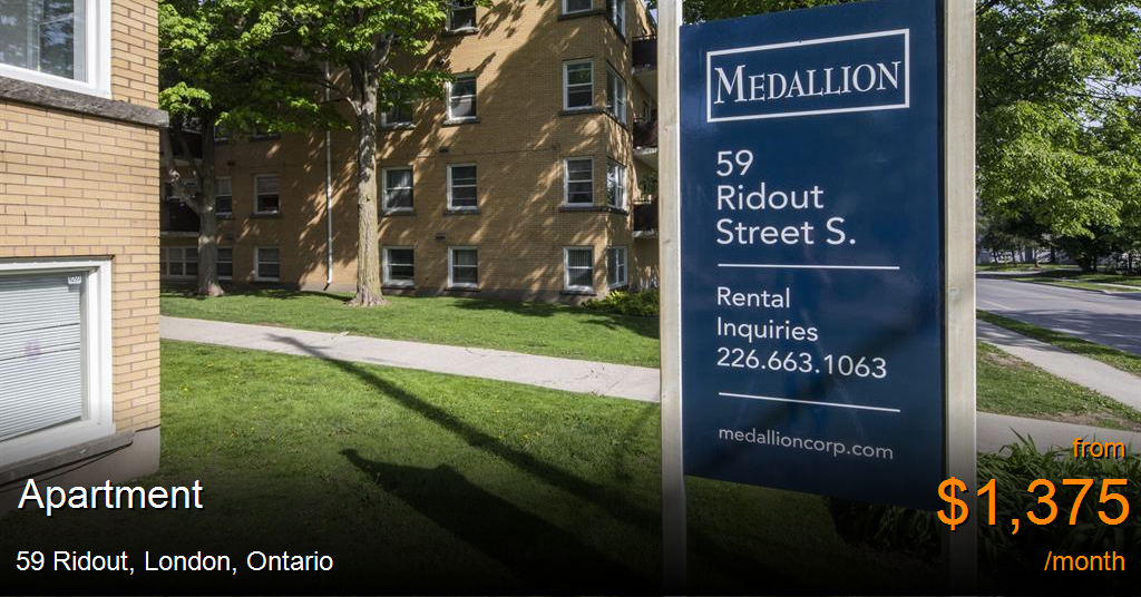 Apartment for rent in London at 59 Ridout. Building InformationIn close proximity to all amenities and just south of downtown London, 59 Ridout is the ideal place for London apartment renters to call home. This rental building is pristinely landscaped year-round and features large mature trees throughout the property.