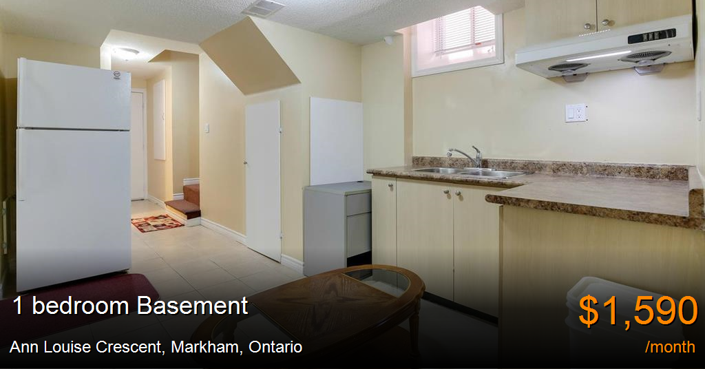 Basement for rent in Markham at Ann Louise Crescent. Spacious 1 Bedroom, Bathroom and Kitchen Basement Apartment available for rent in beautiful neighborhood. Close To Public Transit and Shopping Centre. Perfect location as it is walking distance to Steeles and Markham, with great schools in the neighborhood, Walk to TTC and YRT at doorstep. Excellent access to freeways and major arteries, with a vast amount of parking nearby. More than one Elementary school within a 5-to-10-minute walk. Close to all amenities like Public Library, Costco, Walmart Super Centre, Lowes, No Frills, Home Depot, Staples, Canadian Tire, Tim Hortons, Winners, Cedarwood Public School, Banks, Grocery Store, Amazon Fulfillment Centre, etc.