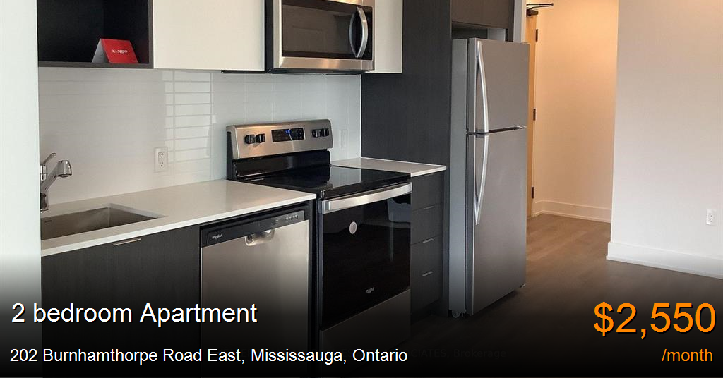 Apartment for rent in Mississauga at 202 Burnhamthorpe Road East. $2,550/mth | 2 Bedrooms | 2 Bathrooms | 600 Sq Ft | 1 Parking Space Your move in date must be less than 1 month