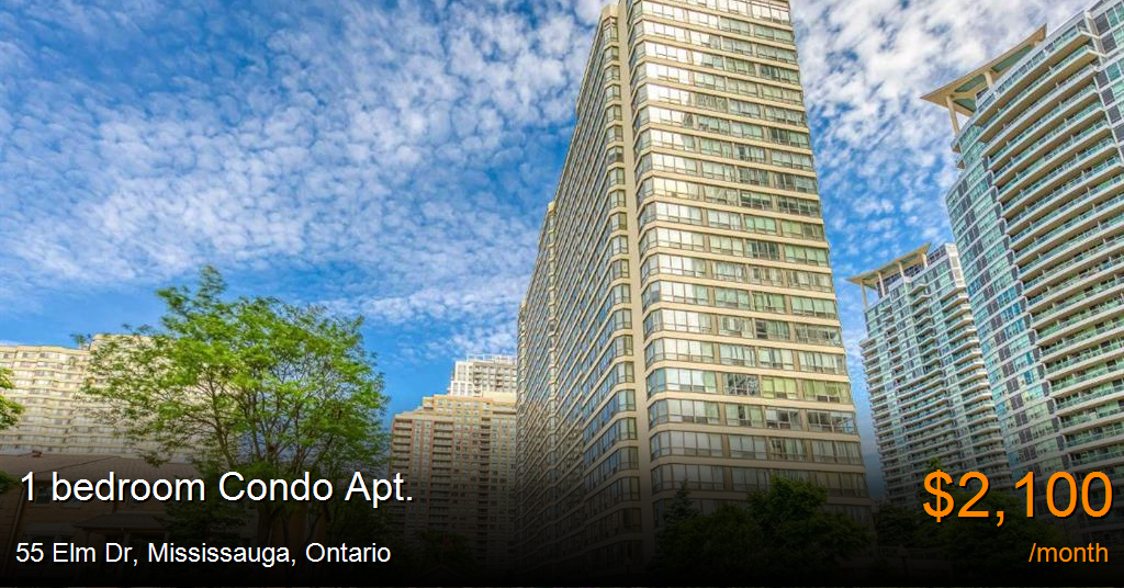 Condo Apt. for rent in Mississauga at 55 Elm Dr. Spacious and bright 1 living room 1 bedroom condo, located in central Mississauga (Huontario & Burhamthrope), steps away from Square one.