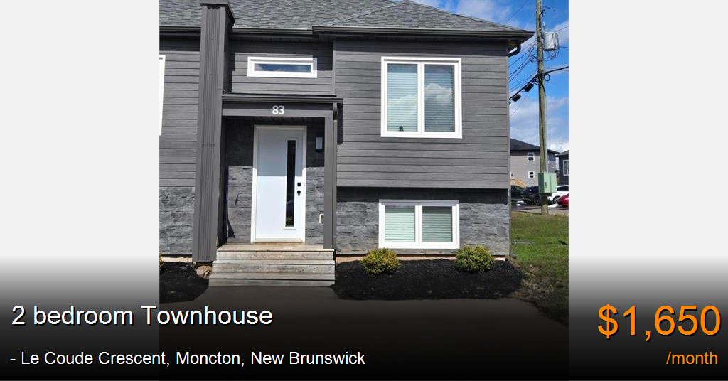 Townhouse for rent in Moncton at - Le Coude Crescent. Experience contemporary living in this newly constructed townhouse, nestled in a serene neighborhood. Thoughtfully designed for both comfort and style, this home boasts a spacious layout, sleek modern finishes, and abundant natural light. Enjoy the best of both worlds with nearby amenities and the peace of a quiet residential community—an ideal place to call home!