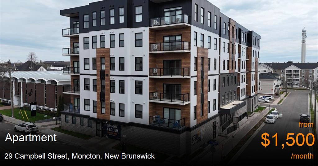 Apartment for rent in Moncton at 29 Campbell Street. Experience urban living at its finest with an exclusive rent discount, enjoy the first month rent-free and $75/month underground parking for one year! Nestled in the vibrant community of Moncton, this mid-rise apartment complex offers a variety of spacious one- and two-bedroom units, each equipped with modern amenities such as air conditioning, balconies, ensuite bathrooms, spacious walk-in closets, and captivating city views. With thoughtful design and attention to detail, residents can unwind in comfort while enjoying the convenience of nearby shopping, parks, and accessible public transit. Security is paramount with video surveillance ensuring peace of mind at all hours. Ideal for couples seeking a stylish yet practical residence, retirees looking for a peaceful environment with easy access to local amenities, and young professionals desiring a central location for work and leisure—this community seamlessly combines comfort, safety, and convenience. Take advantage of the rent discounts to settle into a desirable apartment that truly feels like home, with the added benefit of modern features and an unbeatable location. Don’t miss this limited-time opportunity to elevate your lifestyle at 29 Campbell Street—where modern living is affordable and full of potential.