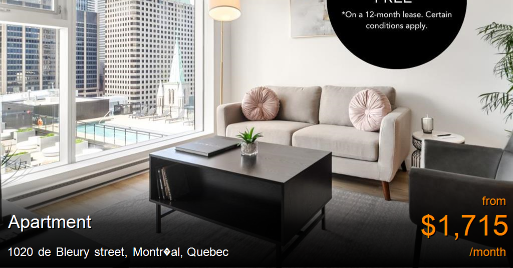 Apartment for rent in Ville-Marie at 1020 Rue de Bleury. Live at Humaniti Discover bright, elegant spaces with spectacular city views. With innovative design and perfect integration of natural light, each unit is a source of well-being and discovery. Advanced and connected, Humaniti is Montreal's first smart vertical community. A bold and distinctive architectural concept, the mixed-use complex includes 151 condominiums, 314 residential rental units, a Marriott's prestigious Autograph Collection hotel, two restaurants, an innovative gym, two Sky Lounges, an office building and commercial space.Thanks to our fabulous Concierge services, you will enjoy a resort life in the comfort of your home. You'll now have plenty of time for life's precious moments!Amenities & neighbourhood 2 Swimming Pools Sauna Gym Skylounge Conference & Coworking Rooms Outdoor Terraces Lounge Area With Kitchen Humaniti Spa Electric Car And Bycicle Sharing Avril Supermarché Santé, the Ange Bakery, the Alizé terrace and the H3 Restaurant Monthly activities for tenants Rent Inclusions Electricity Hot Water Heating and Air Conditioning 5 Appliances Internet Indoor parking ($) Electric-car Sharing Charging Stations Bike Sharing Smart Mailroom Humaniti App Concierge Service Telus Health Telemedicine Service Humaniti Montréal is a project developed by Cogir Real Estate.It is with great pride that Humaniti Montreal's rental condos have been awarded WELL certification, Silver level, by the International WELL Building Institute (IWBI). This is the first certification to emphasize the well-being of occupants in a building not only because they live there, but also because they work and play there. Focusing on human beings as the core of a design such as Humaniti Montreal was a prerequisite in earning such prestigious recognition. The WELL award joins the LEED certification earned earlier by the entire Humaniti project.