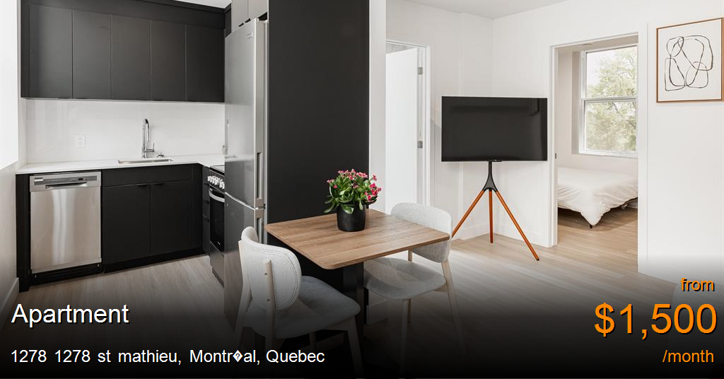 Apartment for rent in Montr�al at 1278 1278 st mathieu. Amenities include Furnished, Shopping nearby, Schools nearby, On-site staff, Public transit, No Smoking allowed, Keyless entry, Laundry facilities, Convenience store, Security Cameras, Parks nearby and 24/7 emergency service.