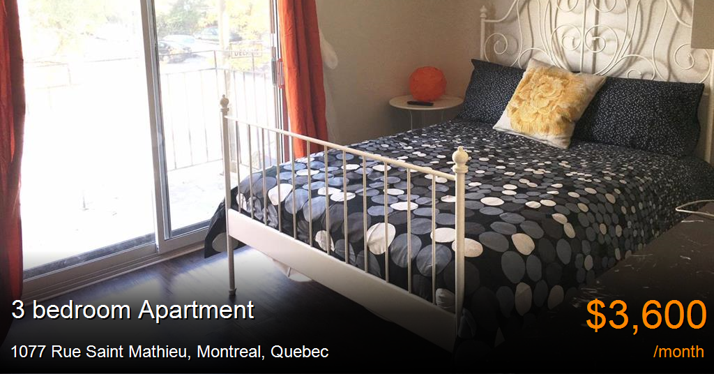 Apartment for rent in Montreal at 1077 Rue Saint Mathieu. Newly renovated sunny quiet condo in downtown Montreal. 24 hour security, 24 hour concierge service, restaurant, spa and outdoor inground heated pool in premises. Fully furnished clean condo with queen sized bed (linens included), all cookware, all dishware, heating, air conditioning, hot water, electricity, telephone (Unlimited North American calls included), wireless high speed internet, cable, smart TV, recorder, DVD player, dishwasher and microwave all included. Great view of the mountain and steps to Concordia University, LaSalle College, Bell Centre, Saint Catherine and Crescent Street. Five minute walk to metro Guy. Indoor parking available and can be included in the rent. Daily parking also available. Car2Go - Car Sharing onsite. The building shares services with the neighbouring hotel. Worry-free downtown living. Secure and well-managed building. Fantastic downtown location - close to all with quick highway access, STM 747 bus to Trudeau airport at the corner.Full breakfast buffet brunch(all you can eat- not included in the rent but available in the restaurant everyday for less than 20 $ including taxes and tip) Airbnb quote for your reservation is normally lower that the actual and final price. However there is not a big difference , the actual price may slightly be higher than your airbnb quotation.