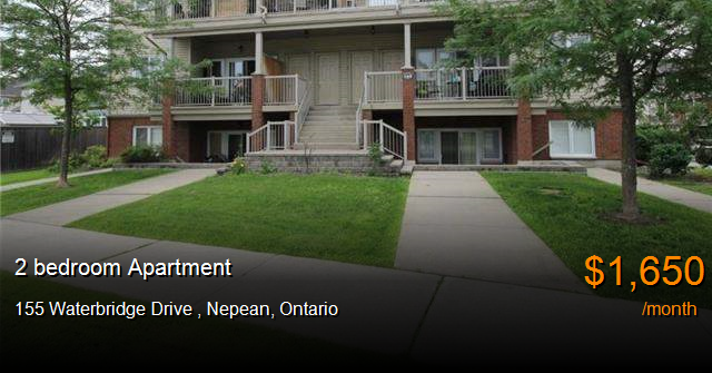 Apartment for rent in Nepean at 155 Waterbridge Drive. 2 bedroom condo unit located on the main level.