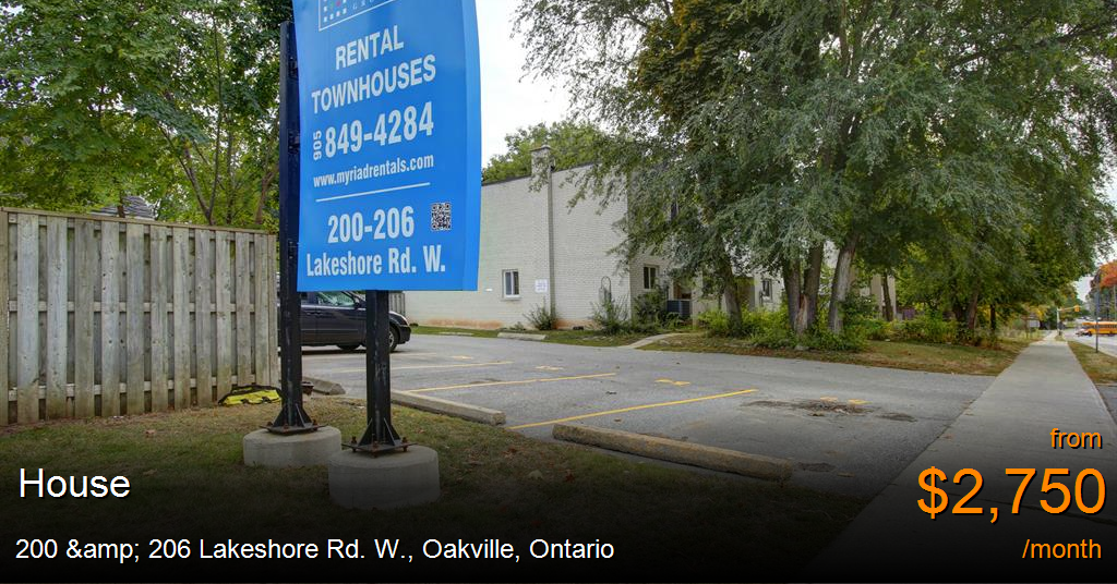 House for rent in Oakville at 200 & 206 Lakeshore Rd. W. Within walking distance to downtown Oakville Walk to Lake Ontario and enjoy the day at Waterworks Park. Quiet enclave of 66 townhouses in an established residential neighborhood. Four piece bath and powder room On-site superintendent has been in building for 27 years Fenced rear yards on some models First and Last required - 1 year lease Easy access to HWY 403 Minutes from Oakville Place, Sheridan College and Ford Motor Company of Canada Plant