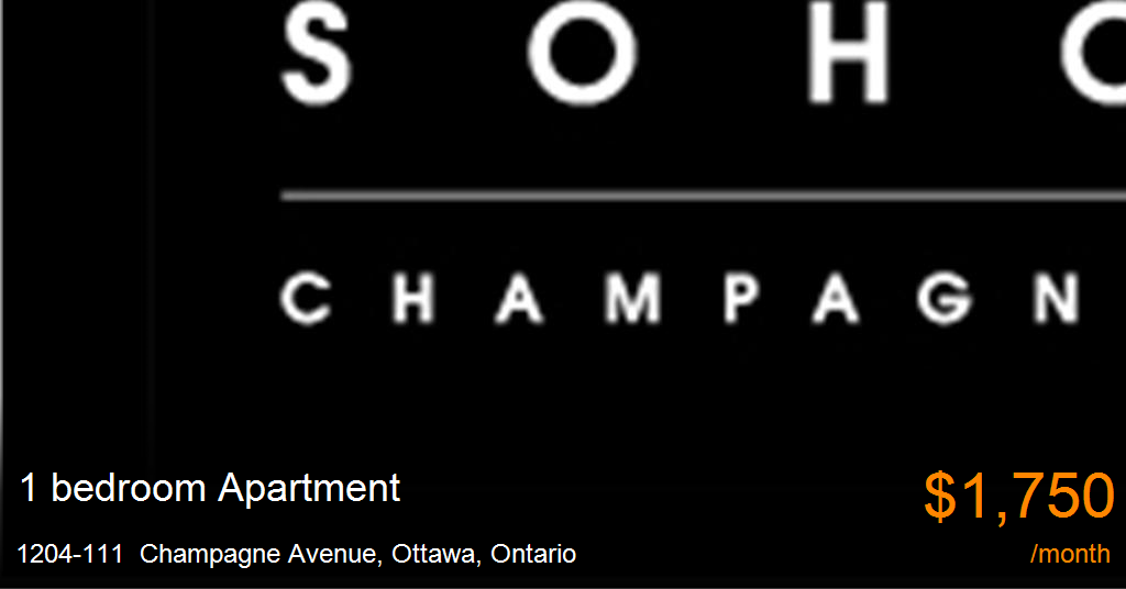 Apartment for rent in Ottawa at 1204-111 Champagne Avenue. Suite 1204 - "The Birch". A stunning corner unit, 659 square feet plus a 54 square foot balcony. Available June 1st, 2015, 1 year lease, no smokers, no pets.